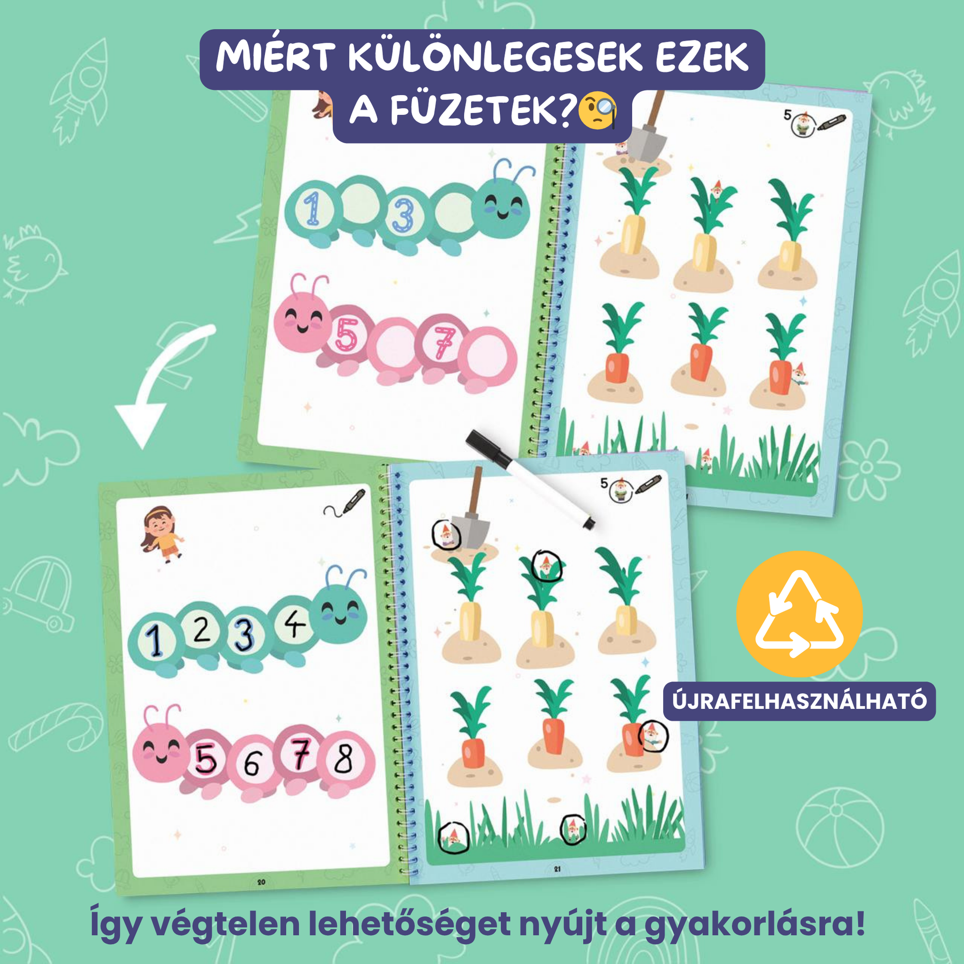 📒 1 db Varázs Matek újrahasználható készségfejlesztő munkafüzet (40 oldal)